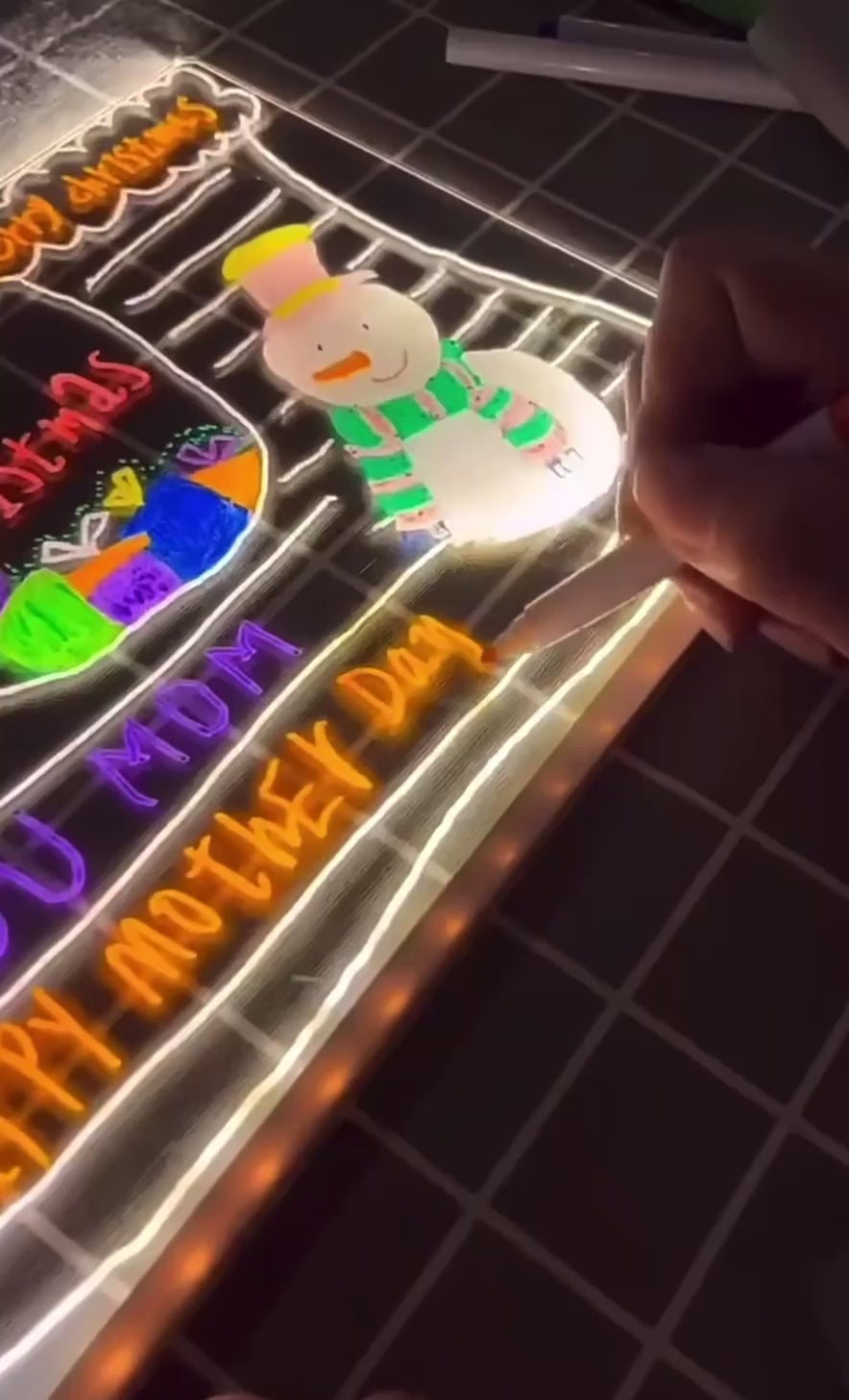 🎨 Djeca mogu crtati i stvarati čarobne crteže po ploči koja svijetli!✨ U kompletu dolazi: • 7 boja flomastera • 2 brisače/krpice za brisanje crteža📏-dostava uključena u cijenu!